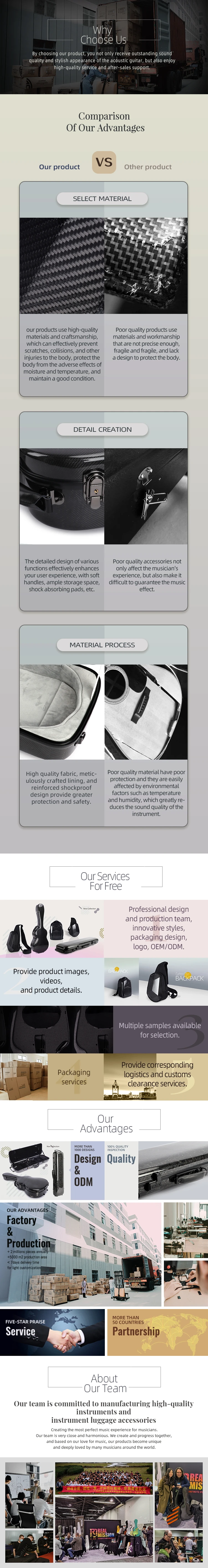 Rainbow Musical Instruments Limited was set up on 2007, Till now we have more than 180 works. Guangzhou Runbo and Guangzhou Haorui is belong to Rainbow. Our main series is wooden case, Fiber glass case, Foam case and gig bag and guitar . With over15years of experience we are able to offer customer OEM design case for different kinds of musical instruments with competitive tooling case.As for the musical instrument packaging, with the help of our talented designed cases and bag, including cello,violin, Cello, Guitar, Ukulele, Woodwind, Trombone, Flute, Clarinet…