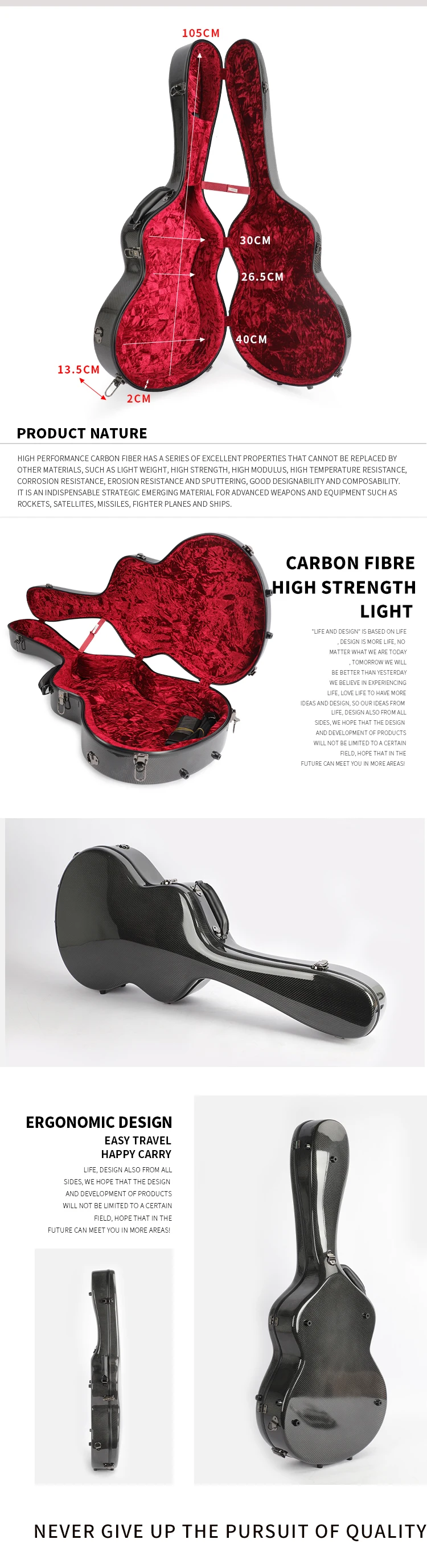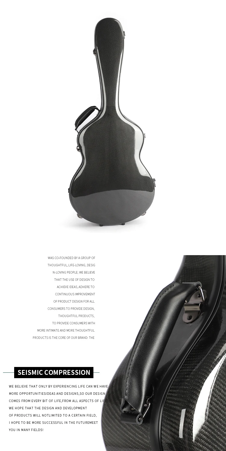 Carbon-C BK Rm Wholesale Black Classical Guitar Carbon Fiber Guitar Case Hard Shell Anti-collision Folk Musical Instrument Case