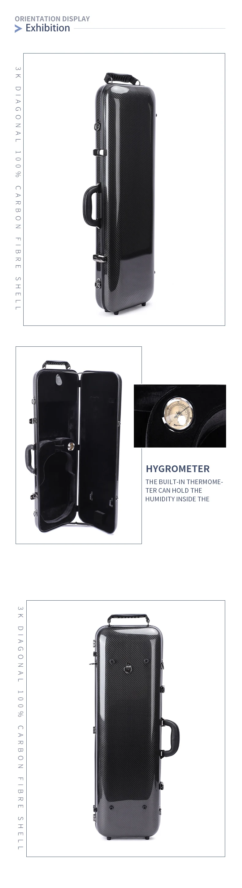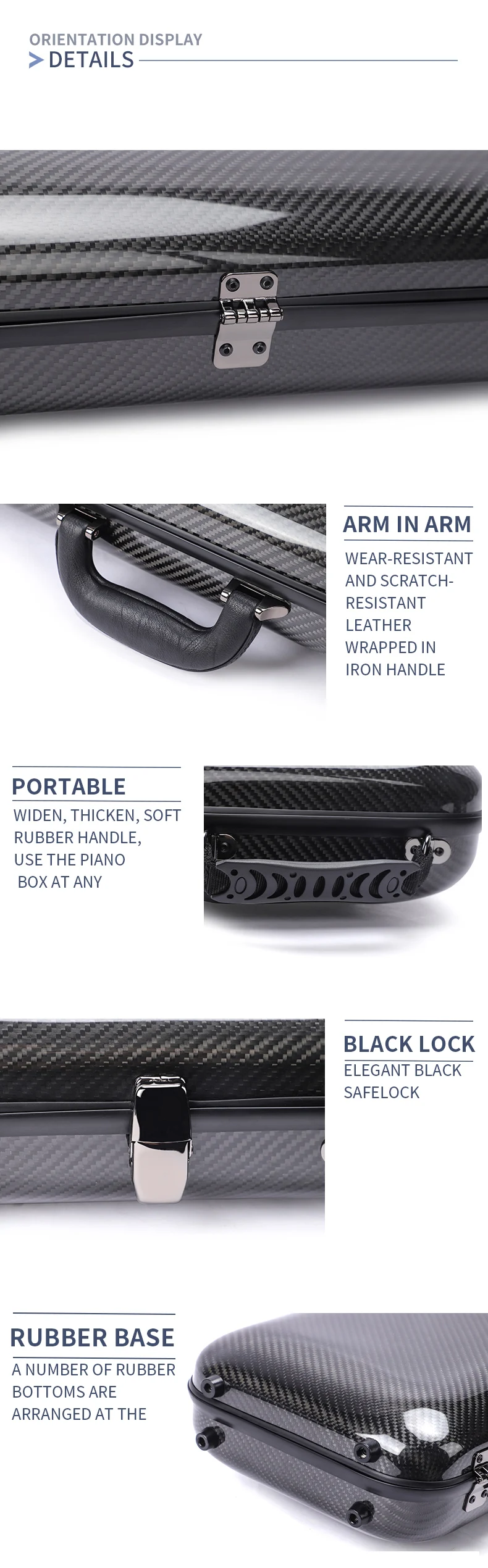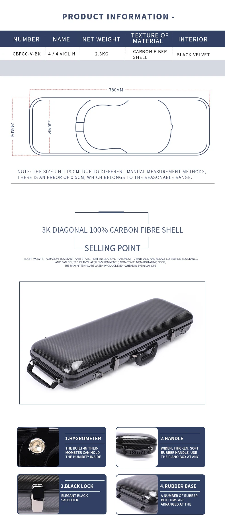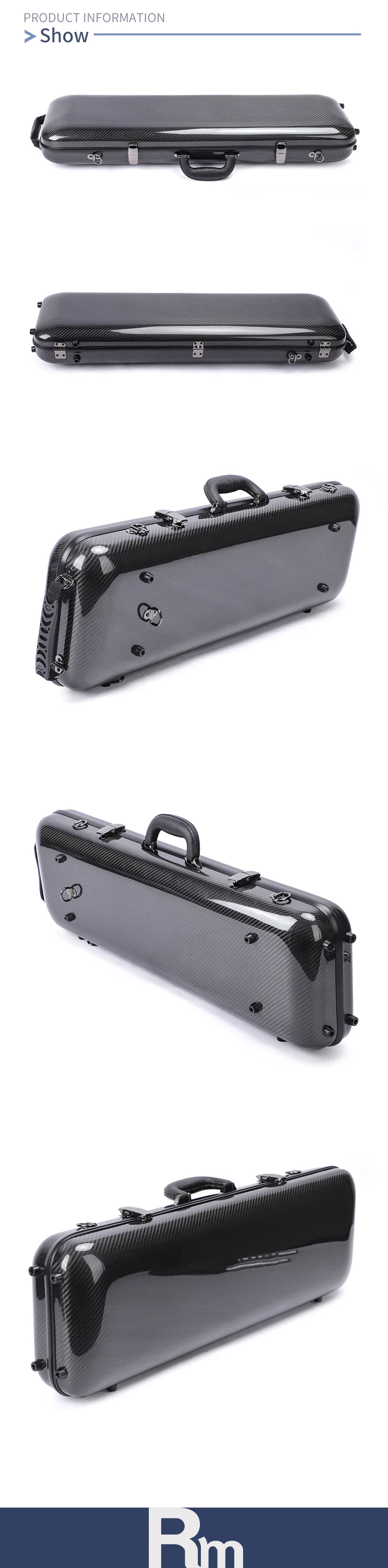 Custom OEM Deluxe Rectangle Shape Carbon Fiber Violin Case Good Protect Anti-collision Hard Case for 4/4 Acoustic Violin Bag