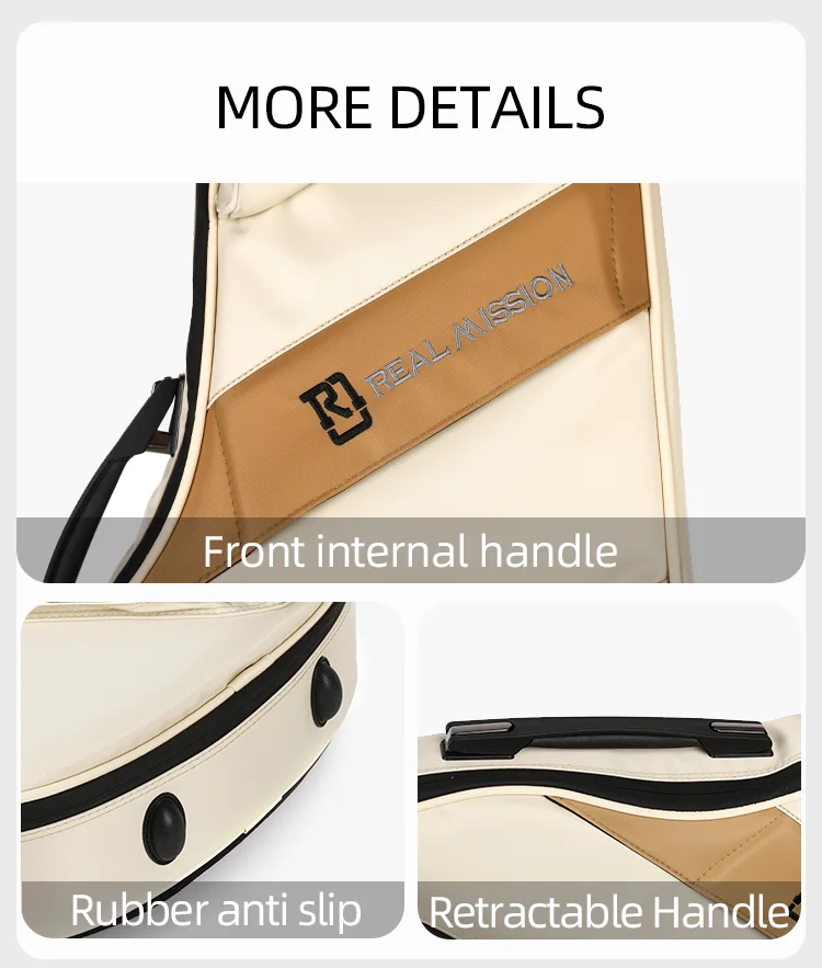 1 top small pocket + 1 large lower front pocket. It is easy to store and carry important accessories such as guitar cords, tuners, guitar strings, audio interfaces, guitar picks and so on.