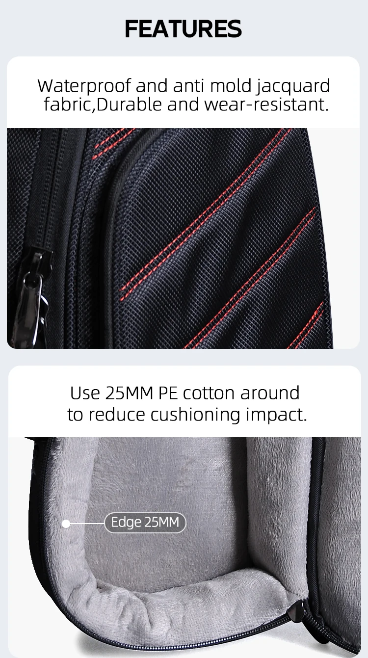 20MM PE sponge +5MM sponge , Handle with Hollow webbing+20MM EVA velvet lining,black hardware,hide the straps