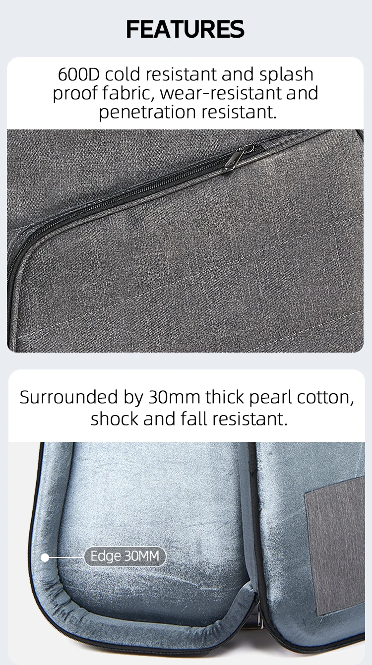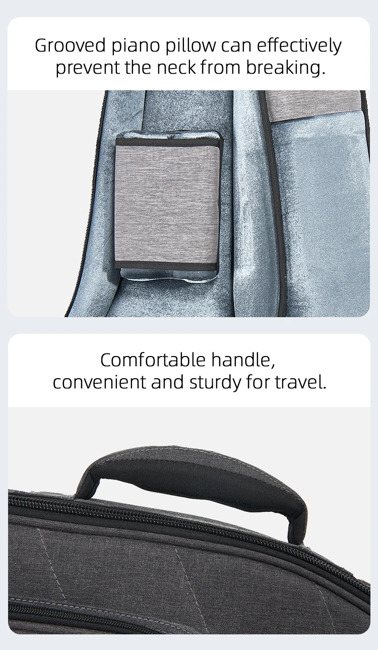 This guitar gig bag features a two-way metal zipper for easy opening and closing of the guitar case.