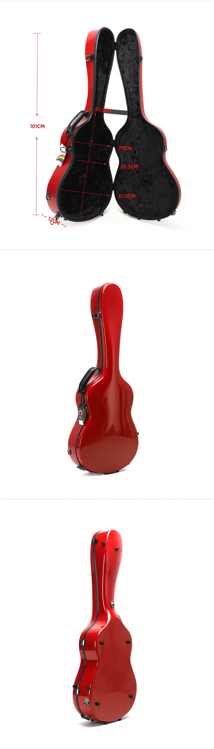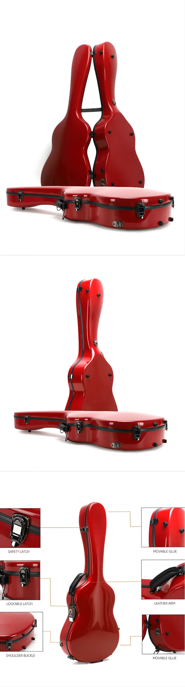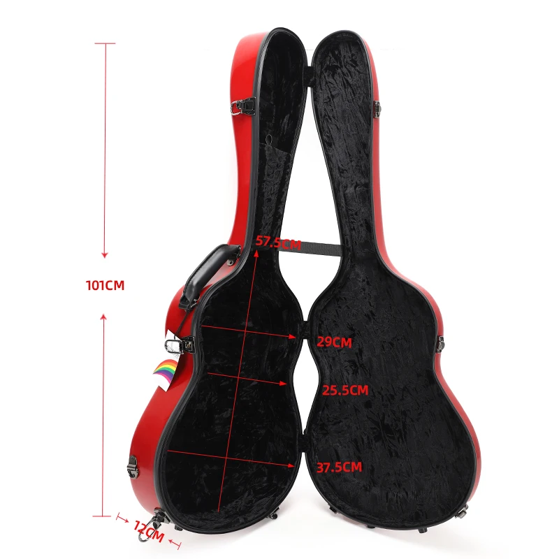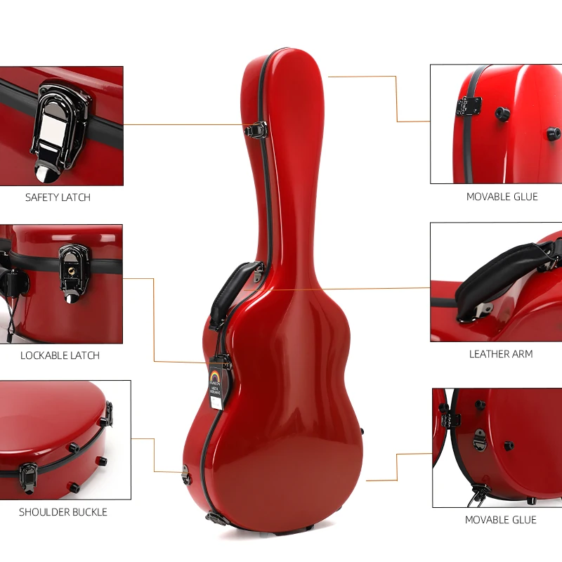 SUN-C-DBLRM classical guitar case 39/41 inch folk guitar case glass fiber reinforced plastic shell red leather gel coat