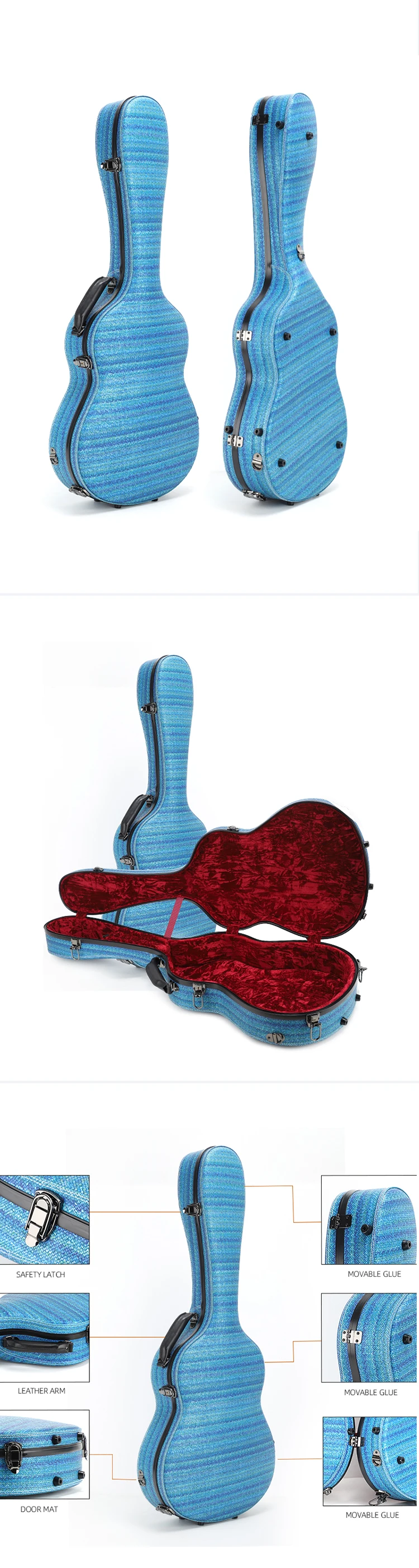 Rm Professional Factory 39/41 Inch Guitar Flight Case Blue Fiberglass Custom Guitar Case High-end Electric Guitar Hard Case