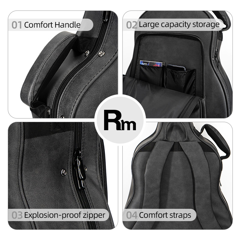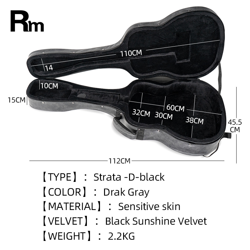 RM Strata -D-black Acoustic Guitar Classical Guitar Foam Case with Exquisite Interior Lining, Thickened Waterproof and Scratch-Resistant Fabric