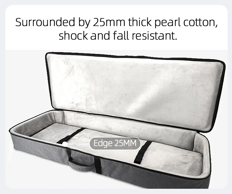 This keyboard bag features a two-way metal zipper for easy opening and closing of the 61 key keyboard bag. Shockproof bottom provides greater protection.