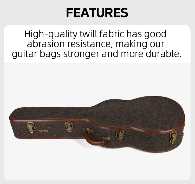 Handcrafted Handle & Premium Binding: This case for acoustic guitar equipped with a handmade handle for comfortable carrying, along with wood binding and leather-covered stitching for enhanced durability and elegance.