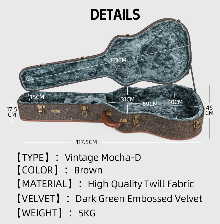 Luxurious Dark Green Velvet Interior: Lined with dark green velvet, the guitar cases interior offers a soft, scratch-free surface to cradle your guitar, keeping it pristine and safe.