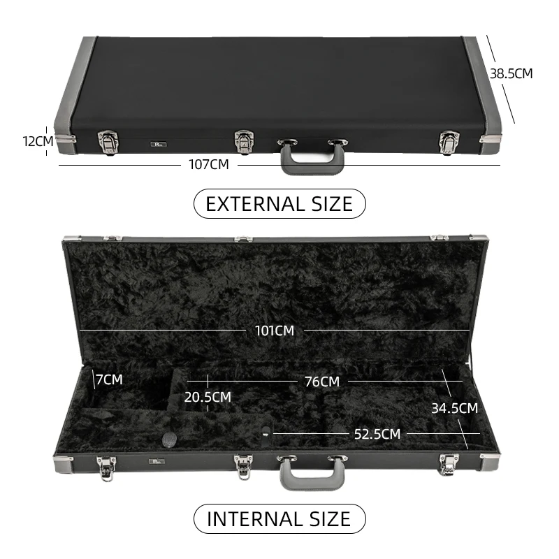 Sleek Aesthetic: Wrapped in elegant black-grey leather, this guitar case electric combines functionality with a stylish appearance, making it a perfect accessory for any musician.